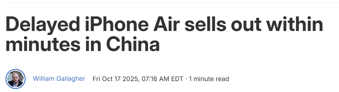 iPhone 17 Air, modelul extrem de subțire lansat cu mare tam-tam, a avut o poveste mixtă. Prețul de 1.000 de dolari și camera foto de bază nu au impresionat cumpărătorii americani. Dar în China? S-a epuizat în câteva minute de la lansare. Aparent, designul ultra-subțire a rezonat perfect cu gusturile estetice asiatice.