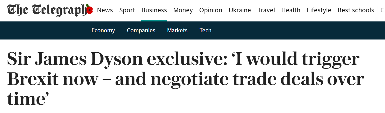 Daily Mirror: „Brexiteer-ul care a fugit – Dyson lasă UK-ul în urmă”