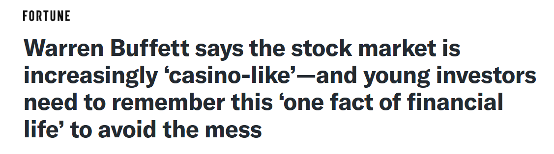 În 2024, Buffett a preluat îngrijorările partenerului său de-o viață, Charlie Munger (pe care îl pierduseră cu puțin timp înainte), și le-a servit crude: „Piețele manifestă acum un comportament mult mai asemănător celui dintr-un cazinou decât în timpul tinereții mele.”