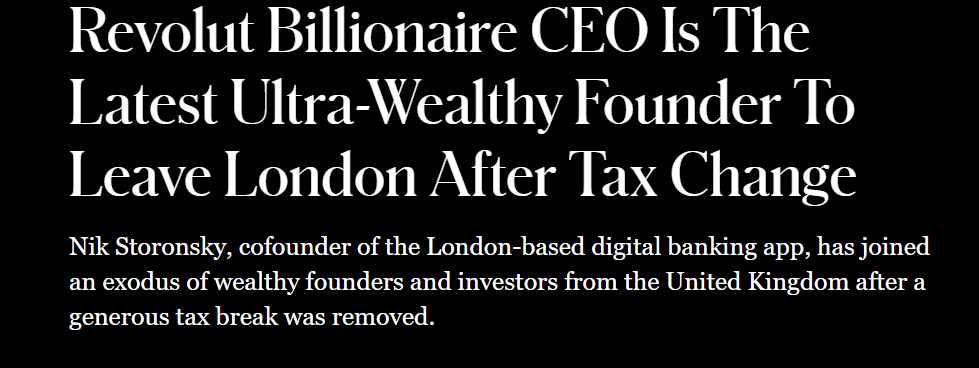Marea Britanie are cea mai mare povară fiscală din istoria timpurilor de pace. Impozitele sunt atât de mari încât antreprenorii și oamenii de succes pur și simplu… pleacă. Și aici nu vorbim de câțiva excentrici, vorbim de exod masiv de capital uman și financiar.