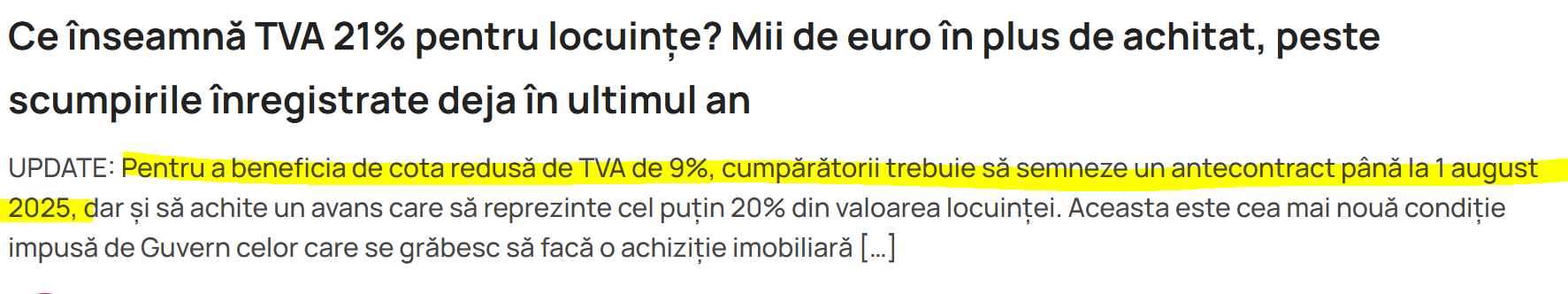 1 august 2025. Data asta ar trebui săpată în piatră undeva, ca un memento pentru generațiile viitoare. De la această dată, TVA-ul pentru locuințele noi a crescut. Și ce s-a întâmplat? Exact ce-ți spune orice manual de economie de liceu: oamenii s-au grăbit să cumpere înainte de deadline.