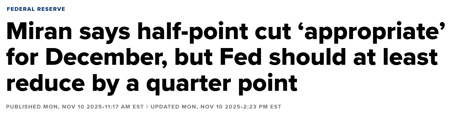 Iar în decembrie 2025, când Comitetul Federal de Piață Deschisă (FOMC) a decis să reducă ratele dobânzii cu 25 de puncte de bază, ghici cine s-a opus cerând o reducere mai mare, 50 de puncte? Exact. Stephen Miran.