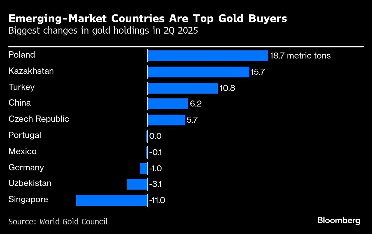 Băncile centrale din piețele emergente cumpără aproximativ 60 de tone de aur pe lună. China singură a acumulat aur timp de 14 luni consecutive până în decembrie 2025, ajungând la 74,15 milioane de uncii. În același timp, China a redus deținerile de titluri de stat americane cu 95,5 miliarde de dolari în opt luni.