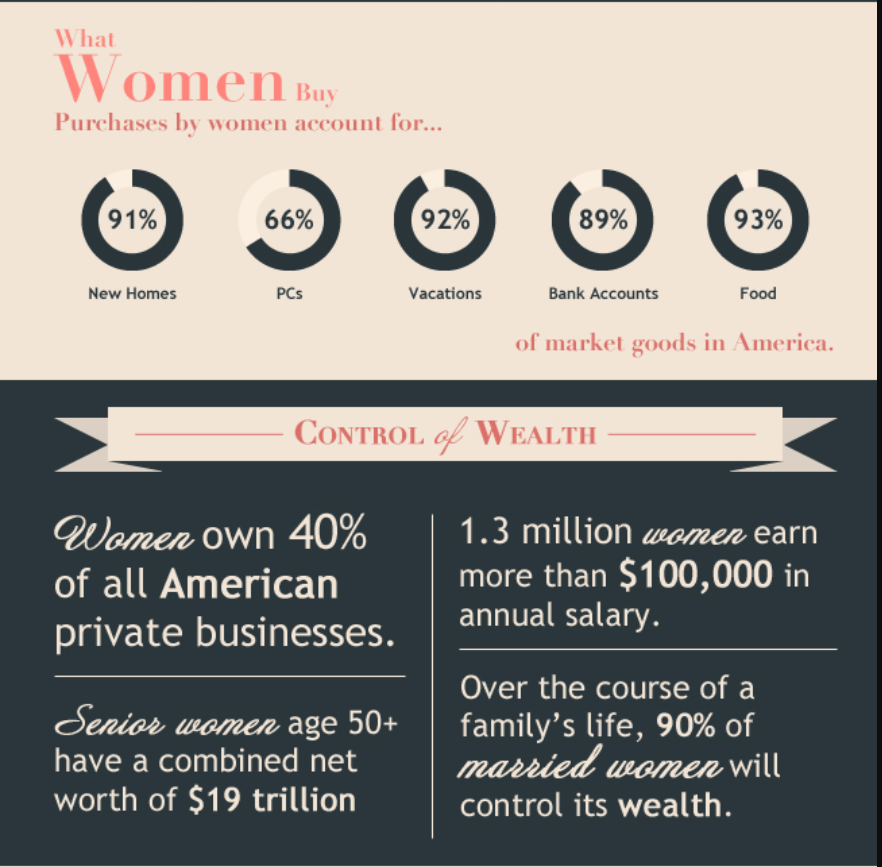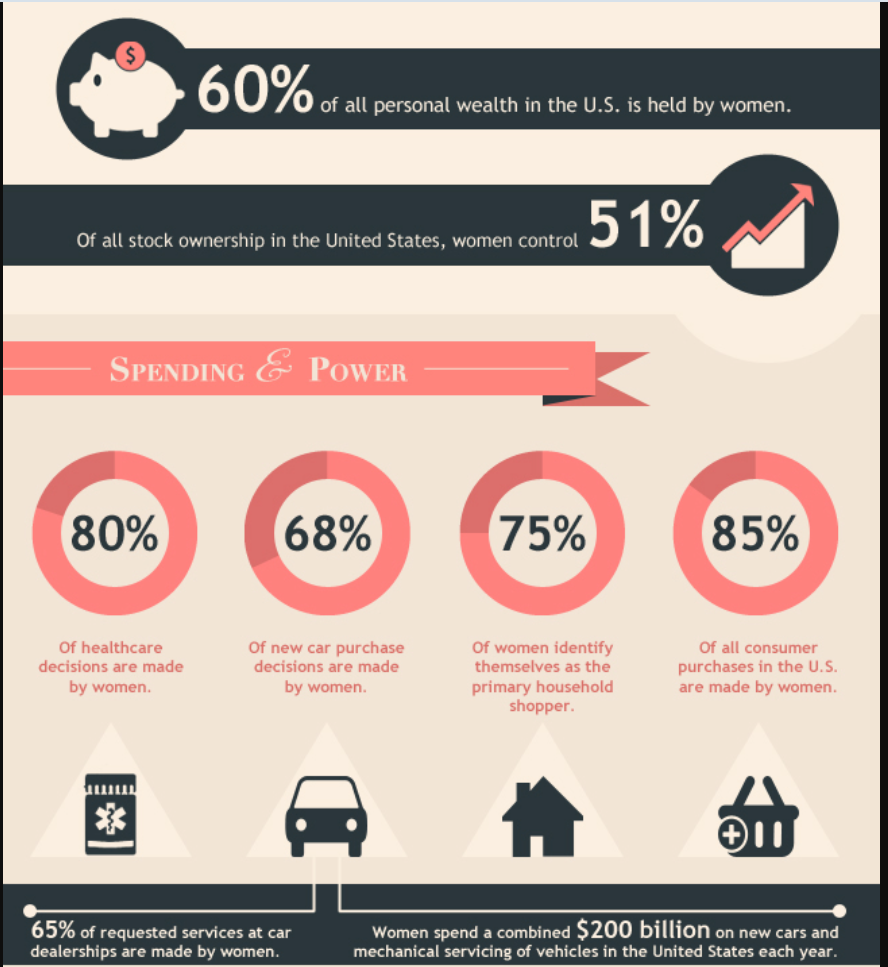 • Consum redus (femeile controlează 85% din deciziile de cumpărare în SUA)