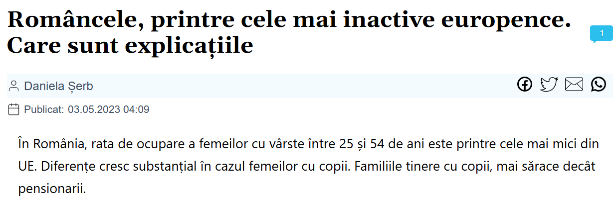 Și înainte să zici „păi și în România cum e?”, hai să-ți spun că nu e mult mai roz. Avem propria noastră criză demografică, propria noastră migrație masivă a forței de muncă tinere și, surpriză, propriile noastre bariere care împiedică femeile să rămână integrate în economie. Dar despre asta vom vorbi mai încolo.