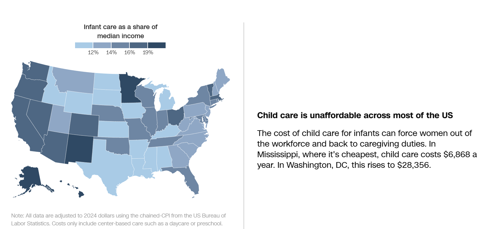 În Mississippi – statul cu cel mai ieftin cost al îngrijirii copiilor din SUA – cheltuiești în medie 6.868 de dolari pe an pentru îngrijirea unui copil mic.