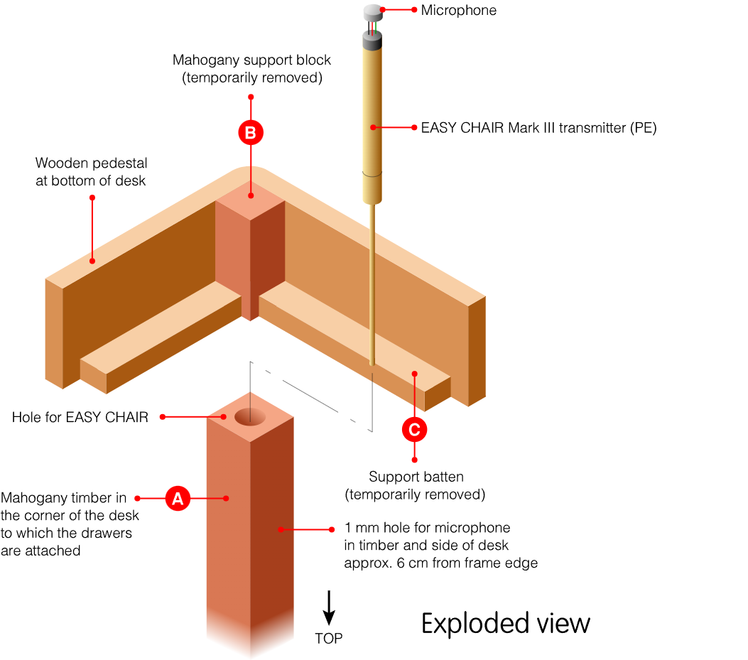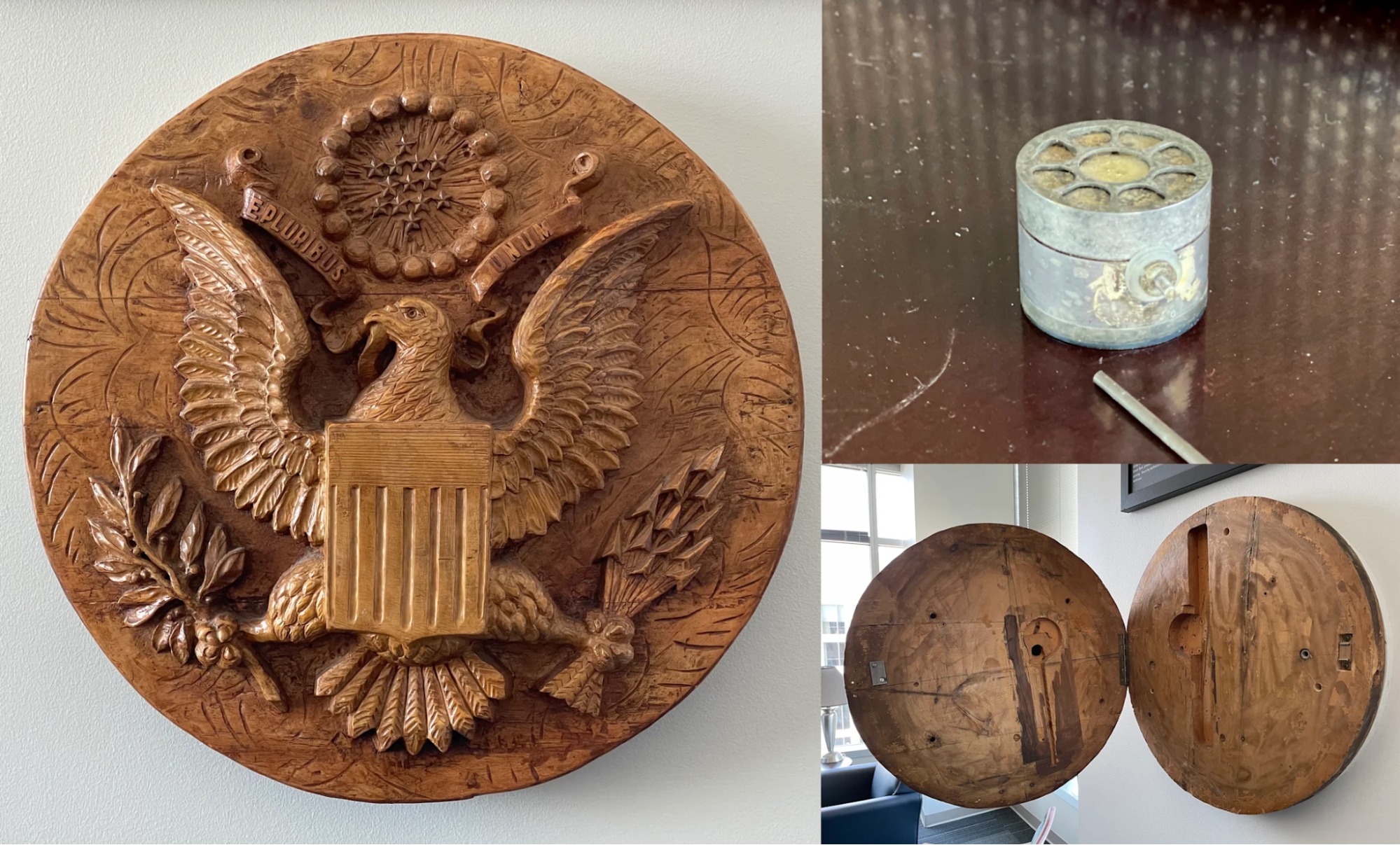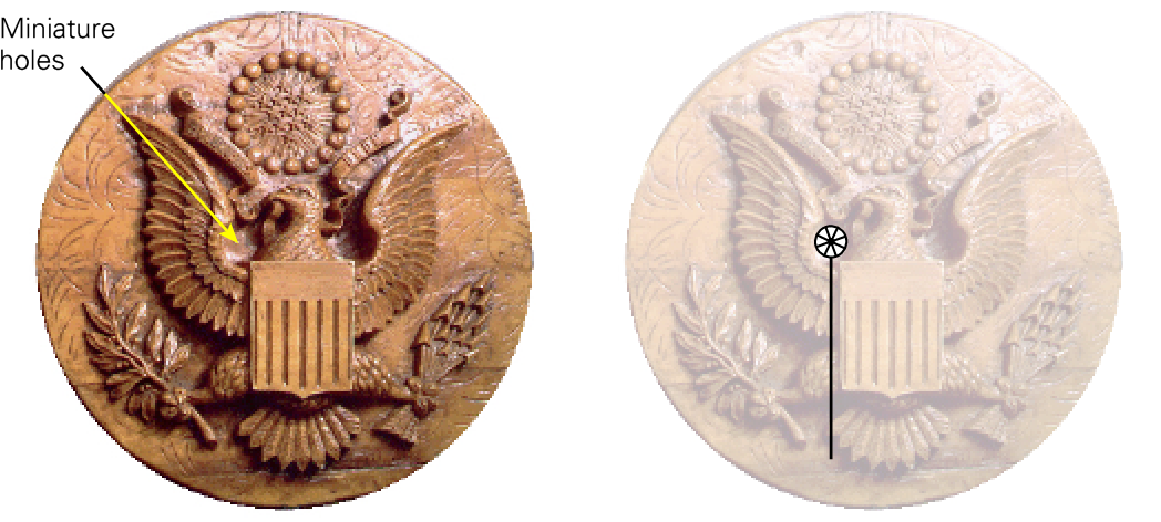 A fost descoperit în 1952, aproape accidental, când un operator radio britanic a interceptat conversații în limba engleză emanând din reședința ambasadorului american. Nici atunci descoperirea nu a fost imediată, au urmat multiple căutări eșuate înainte ca tehnicienii să se concentreze pe placa sculptată. Când au deschis-o în cele din urmă, au găsit ceva de o simplitate dezarmantă: o mică cavitate de cupru și o antenă.