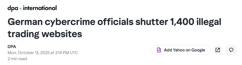 În 2025, autoritățile germane, în colaborare cu BaFin (autoritatea financiară germană), Europol și autoritățile bulgare, au eliminat peste 1.400 de platforme de tranzacționare online frauduloase într-o singură operațiune coordonată.