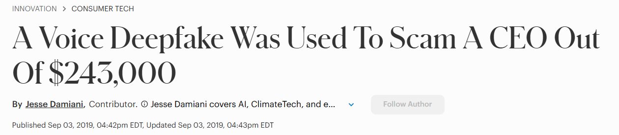 În 2019, CEO-ul unei companii britanice de energie a făcut exact asta. A ascultat vocea șefului său german. Voce pe care o cunoștea. Inflexiuni pe care le recunoștea. Poate chiar și accentul ușor bavarian pe care îl auzise de zeci de ori în ședințe. Și a transferat 243.000 de dolari direct în contul unor escroci.