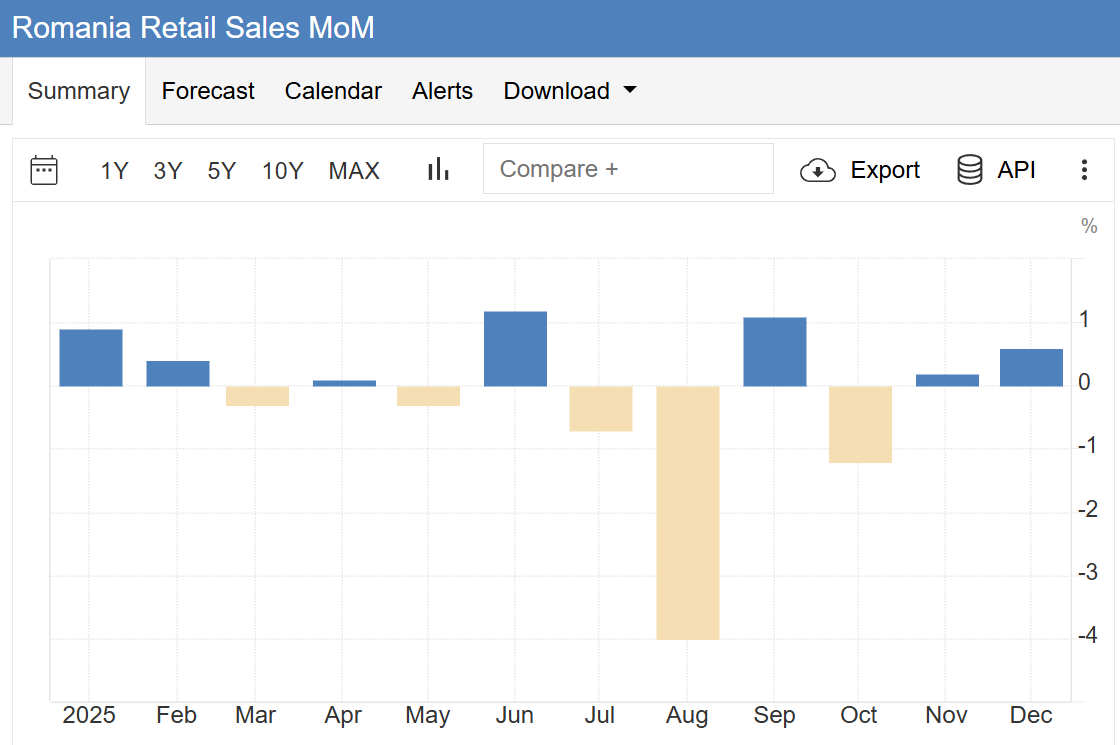Efectul a fost imediat și măsurabil. Vânzările din comerțul cu amănuntul au scăzut în august 2025 cu 7,2% față de iulie, exact în fereastra de după majorarea taxelor. BNR a confirmat că transferul în prețuri s-a produs „într-o foarte mare măsură”, iar impactul combinat al TVA și accizelor a adăugat aproximativ două puncte procentuale la inflație.