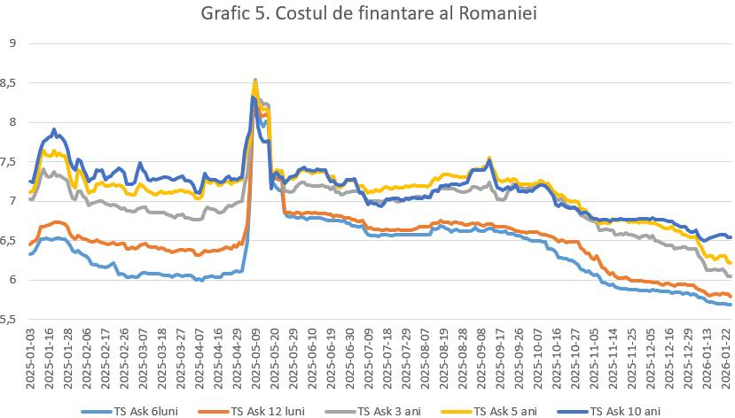 Alt detaliu pe care nu prea îl auzi la știri: dobânzile la care se împrumută statul român sunt acum la minimele ultimilor doi ani. Statul se finanțează mai ieftin cu aproximativ 2% față de prima jumătate a lui 2024.